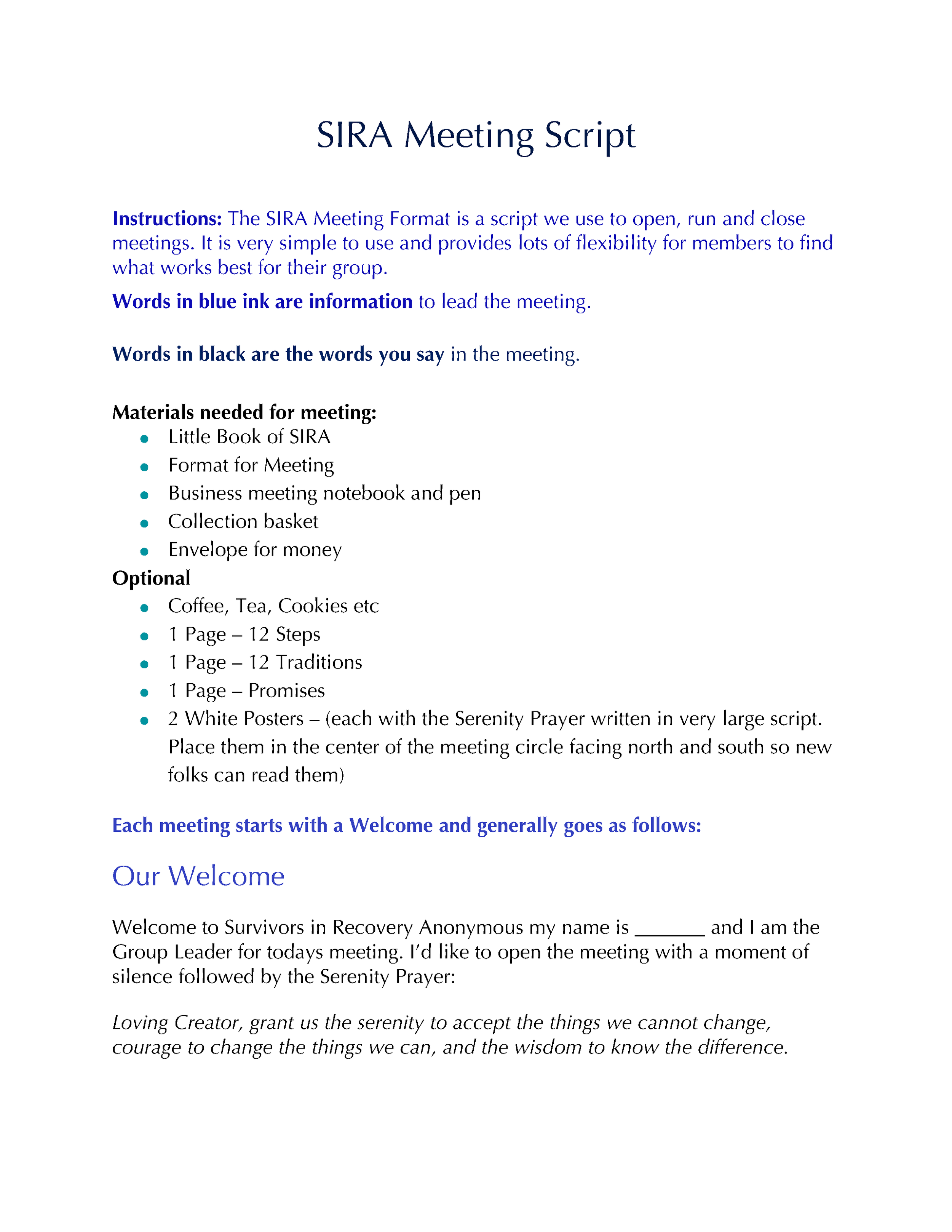 The SIRA Meeting Format is a script used to open, run and close meetings. It is very simple to use and provides lots of flexibility for members to find what works best for their group.